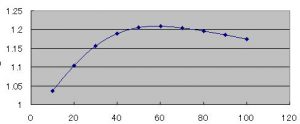 グラフ化すると(横軸は速度、10は10km/hの走行抵抗/0km/hの走行抵抗)